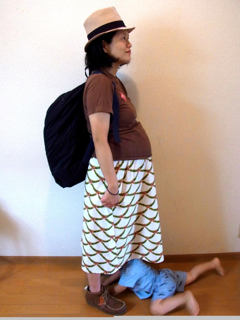 家人がこさえてくれた産前産後対応ゴムスカート履いて