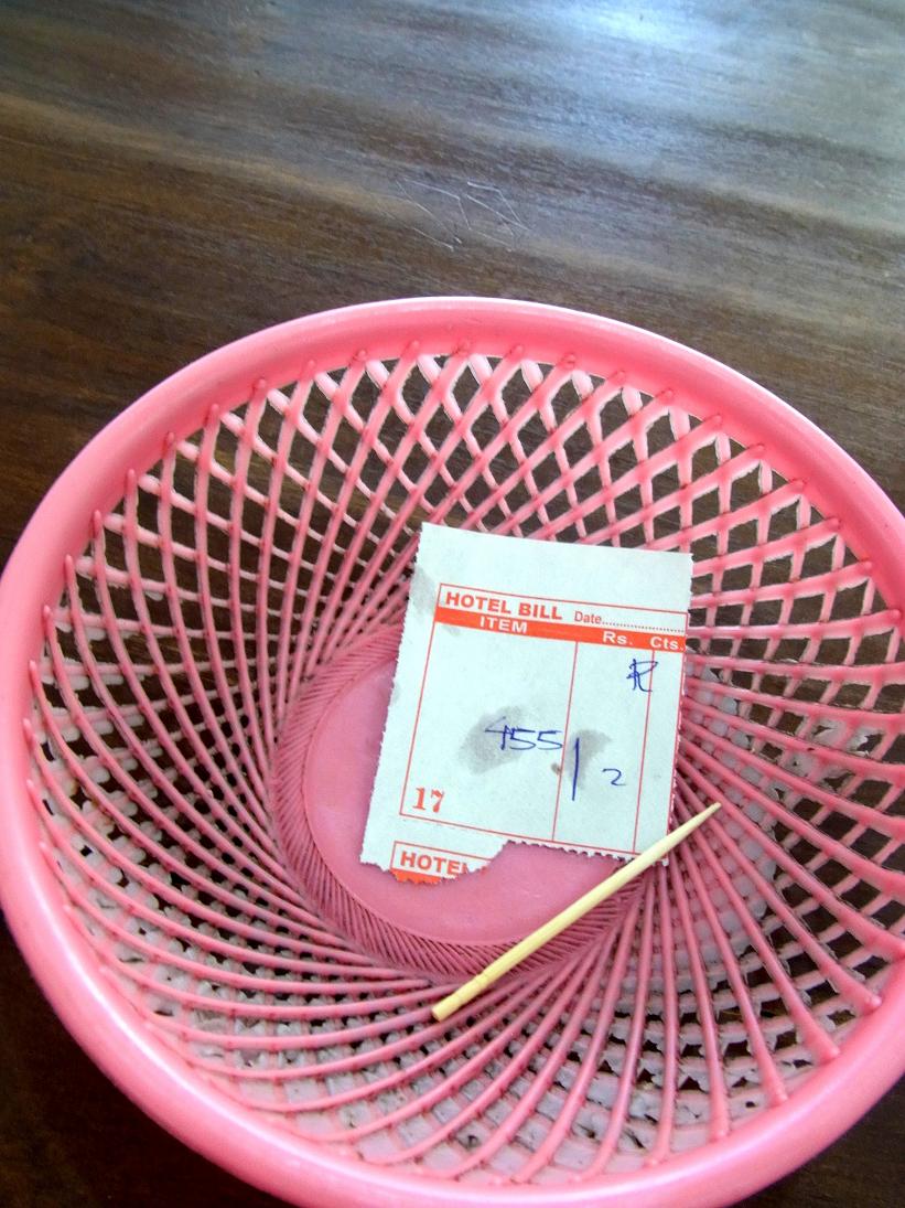 伝票と爪楊枝がはいって、テーブルにおかれます。