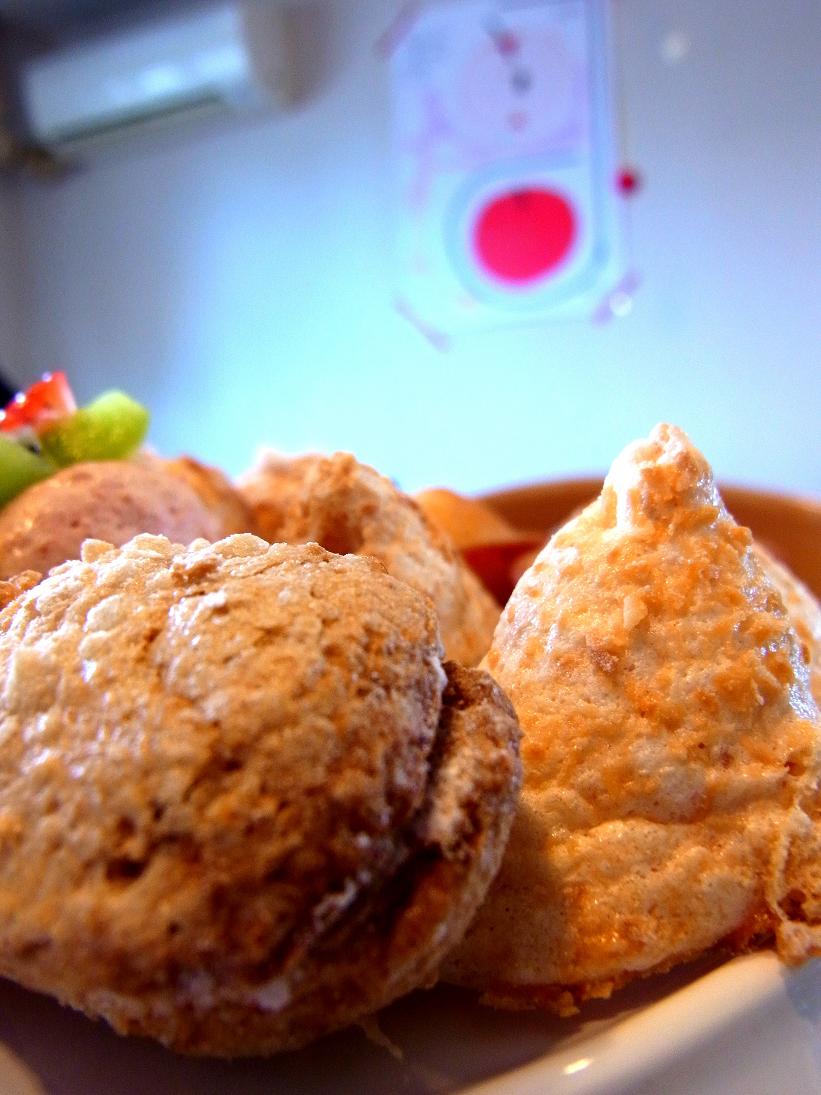 んでイチゴのメレンゲ生地にフルーツとクリームはさんだのんも