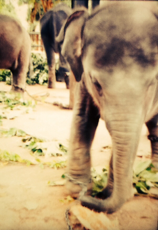 子を抱きかかえ、もうすぐクローズする象の孤児院のチケットカウンターに走り