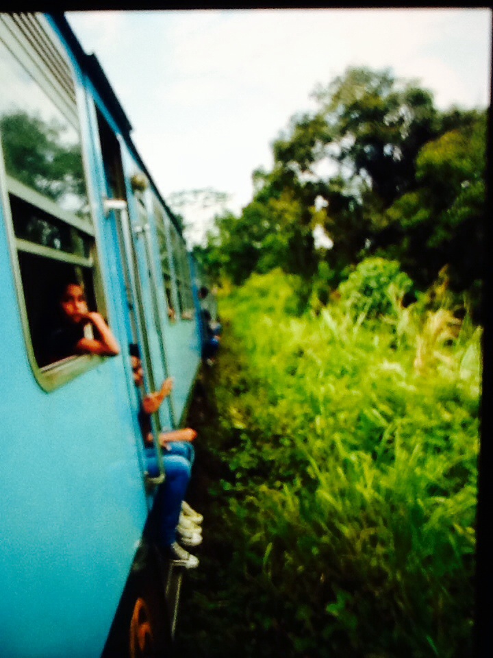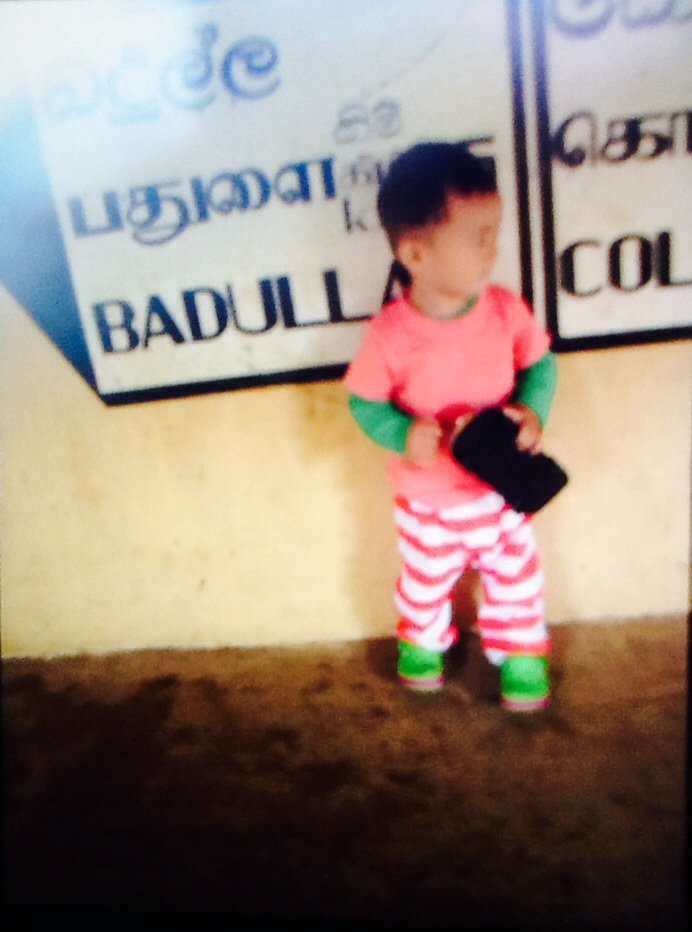 スリランカでも子を抱きかかえ、バックパックを背負い、